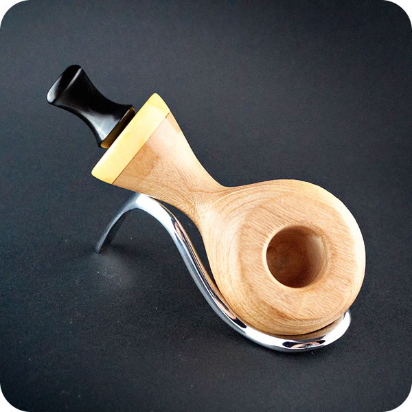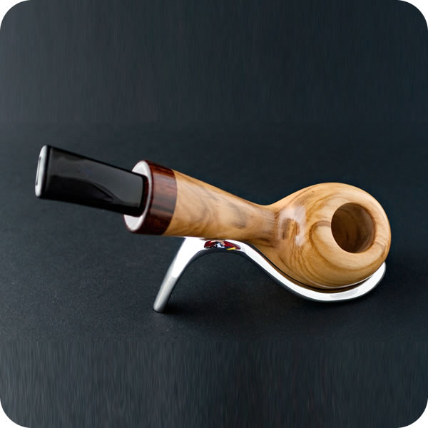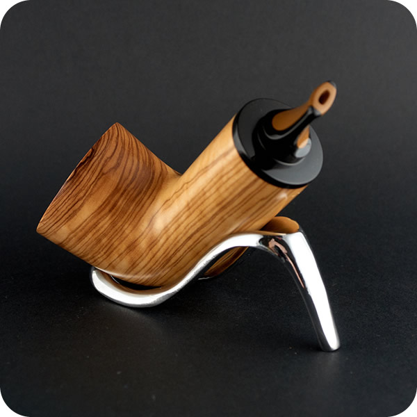 Smooth finished reverse calabash system pipe in olivewood. Stem made in two different colored ebonites.